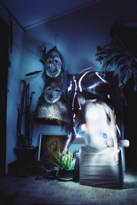 Glen and Kellie’s work feature images made at night or dusk with flash or torch work illuminating the subject. Technique is one thing but the images are something else – they are, as you might expect, surreal but there is more! The images appear as spontaneous, serendipitous and intuitive moments. Intrigue and mystery are embedded in each image and do demand intense and prolonged viewing