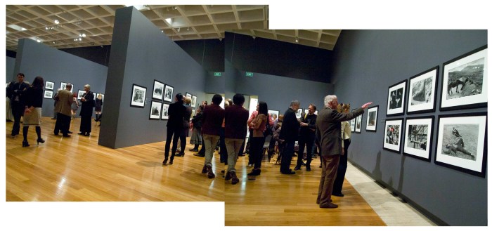 The occasion was auspicious by the presence of swishy attired, mainly older people unknown to the writer who must have been art gallery members and patrons. Scattered here and there were photographers, who to me, also seemed of the older age group. It has been a long – long, time since an exhibition of photography such as this has gained entry to the QAG/GOMA duopoly – and perhaps the invitation list, at least the photographers one, may have originated in that long past era of the last photo show. Additionally it seemed strange that some important players in the world of photography including a now, local renowned photojournalist, who actually knew HCB, wasn’t on the invitation list but secured entry as guests or by unofficially passed on invites.