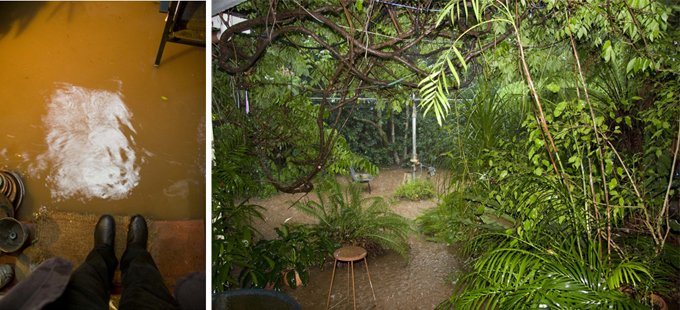 Water came within 20cm of our studio and a brown torrent flowed into our garden and under the house. At the bottom of our street a massive flow of water along East Creek took the lives of two people.