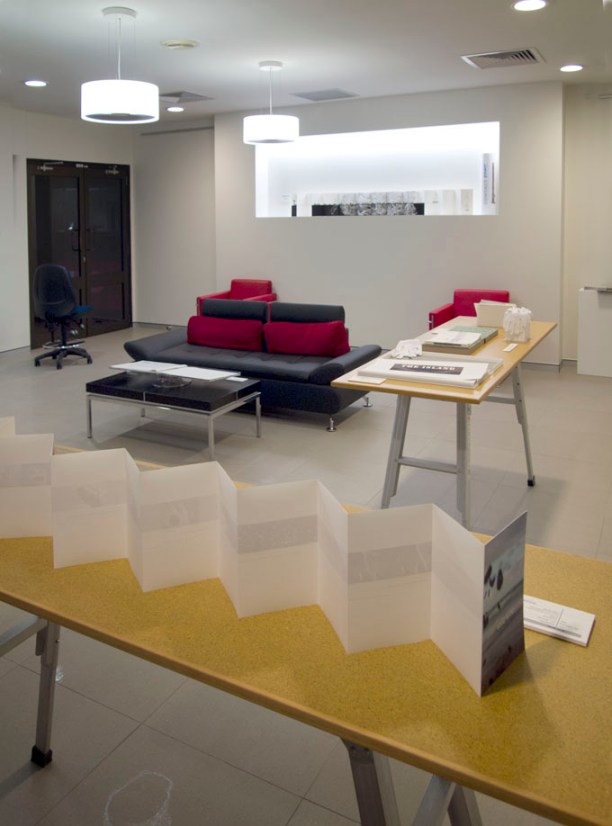 Another work, a series of books attempts to contain the big lino imagining mt giluwe. It is in fact, books made from pages of the large work. Once again there is a calling to explore and this time it is easier as the dividing and sectioning of the work into book form creates a path through the act of page turning. Some pages have been slashed and red paper shows through the jagged shapes implying similar questions as the red rectangle in the larger work. I am comfortable with this work, and perhaps Mosely is as well, as it is derivative of the language that he has employed in the past.