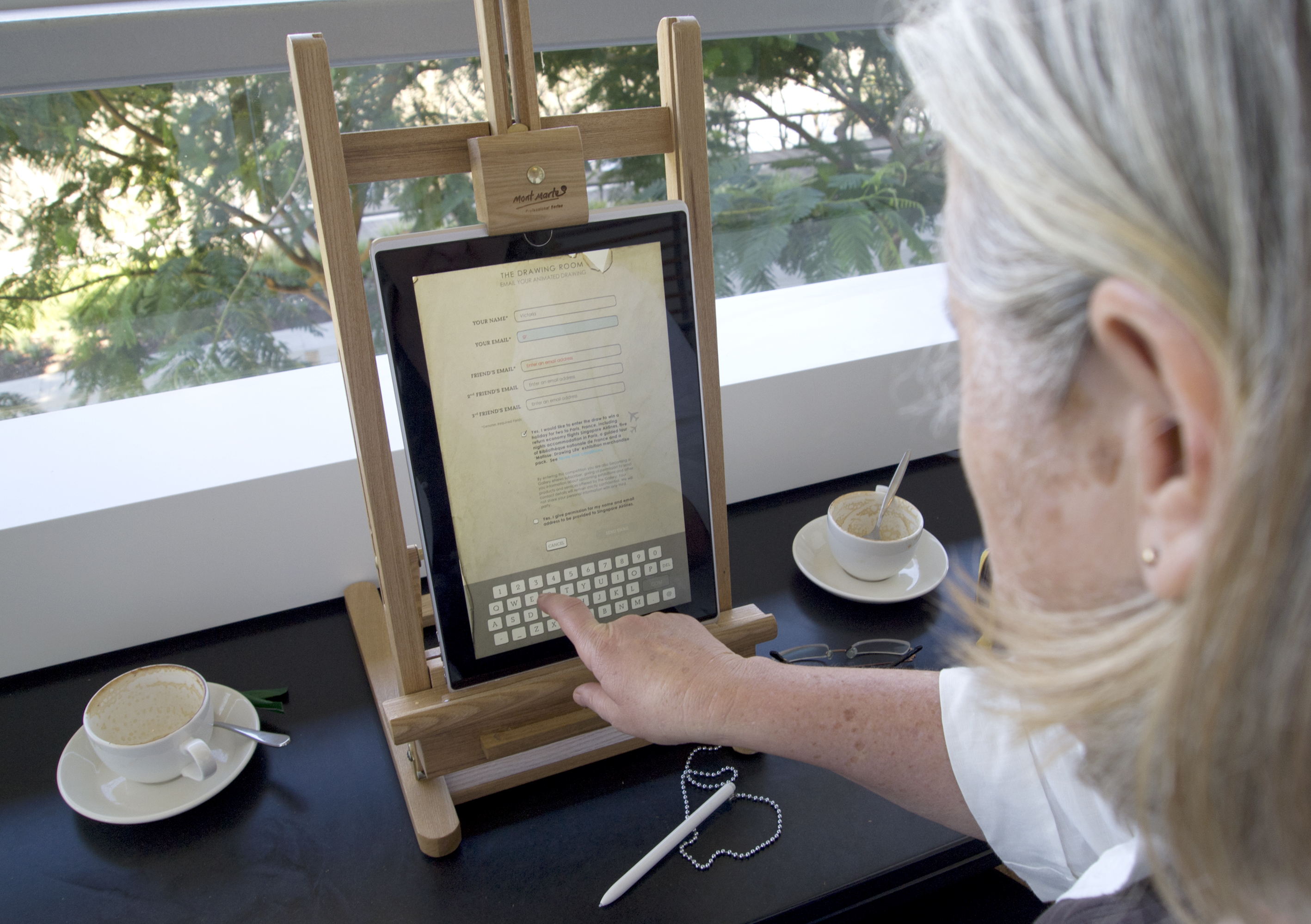 For the techno-inclined tablets were available loaded with a drawing program that enabled a drawing to be made with finger or stylus. Not necessarily following the subtlety of lead on textured paper but none-the-less an ‘experience’. We drew the Brisbane city skyline opposite GOMA. The experience was value-added by the opportunity for the ‘drawing’ to be emailed to friends. (We were to later discover that when viewed, the drawing grew on the screen accompanied by music.)
