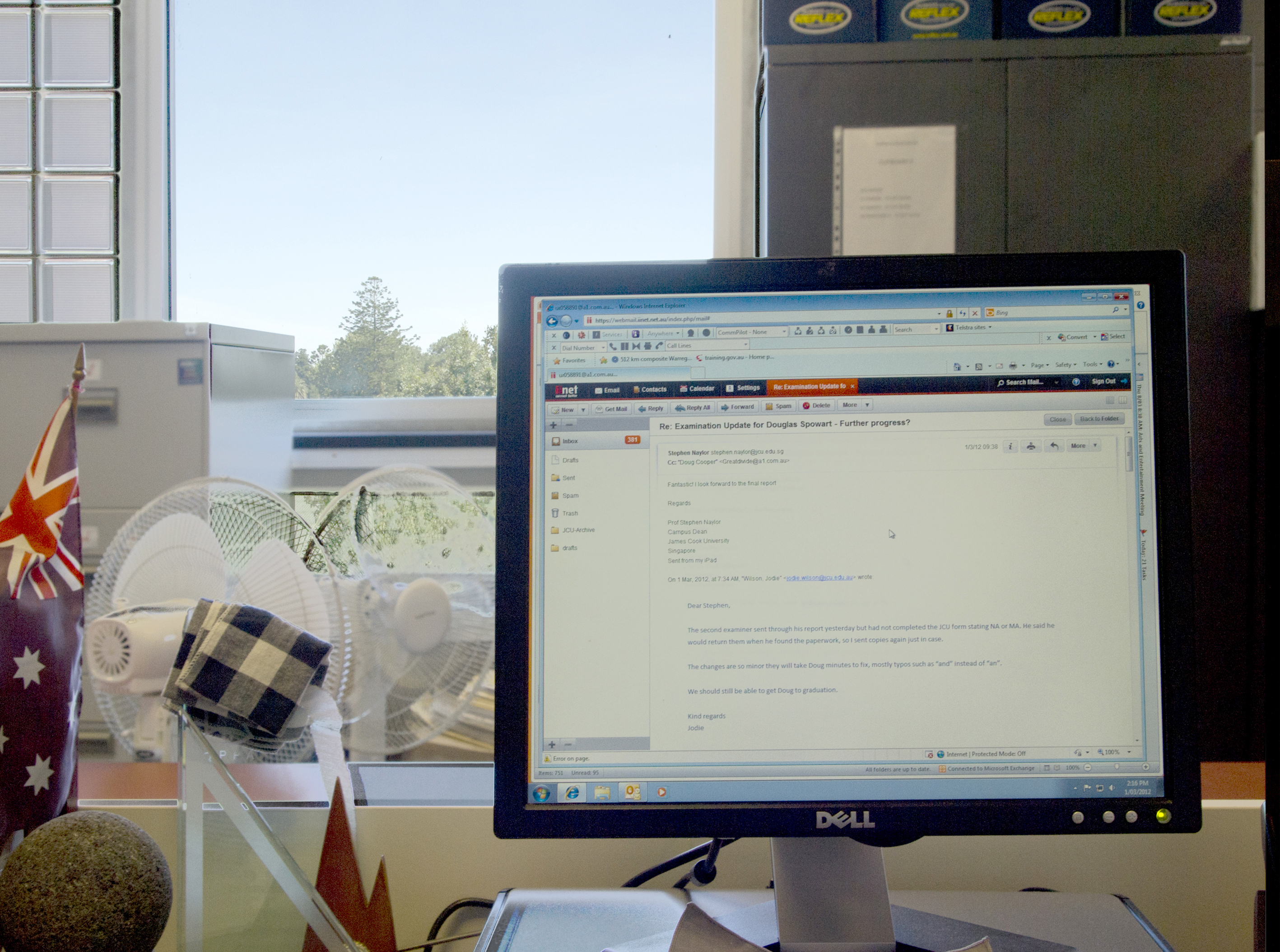 Late morning on March 1st an email arrived from the Post Graduate School from James Cook University advising the examiners had responded to my PhD exegesis (thesis). I was told that only a few minor corrections, mainly typos were required. I found it hard to concentrate on work – 7 years of part-time study came down to a moment of quiet reflection out of the window beyond the computer screen.