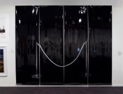 I abandon the idea of a photograph as a “window to the world” – instead I embrace the materiality of the surface itself. The highgloss, large scale photographic paper, with its fragility exposed, acts as a distorting mirror capturing the changing surrounds and highlighting its sculptural form. The distinction between the image in the photograph and the object of the photograph is underscored here. The subject of the photograph, a huge analogue negative of the museums’ people barrier, stands in direct opposition to the seductive invitation of the surface.