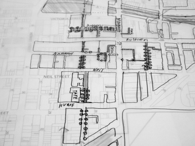 At the meeting we were given an overview of the project and introduced to a plan for the workshop that divided the city into ‘places’ for review and discussion including the following: Open Spaces, Laneways and Streetscapes, Public Art projects and the landscape.
