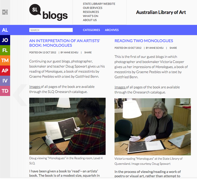 COOPER+SPOWART Guest Bloggers @ SLQ Artists’ Books