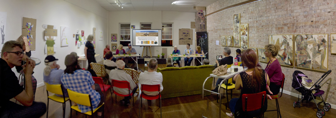 The Artist Survey books acted as catalyst and provocateurs for discussion and commentary where each panellist presented a particular slant on their selected subject. What followed was an organic and freeform forum with a range of questions being discussed and challenged. The main theme—the identity crisis of regional artist—was at the centre; the responses made the issues relevant, while evoking alternative considerations.