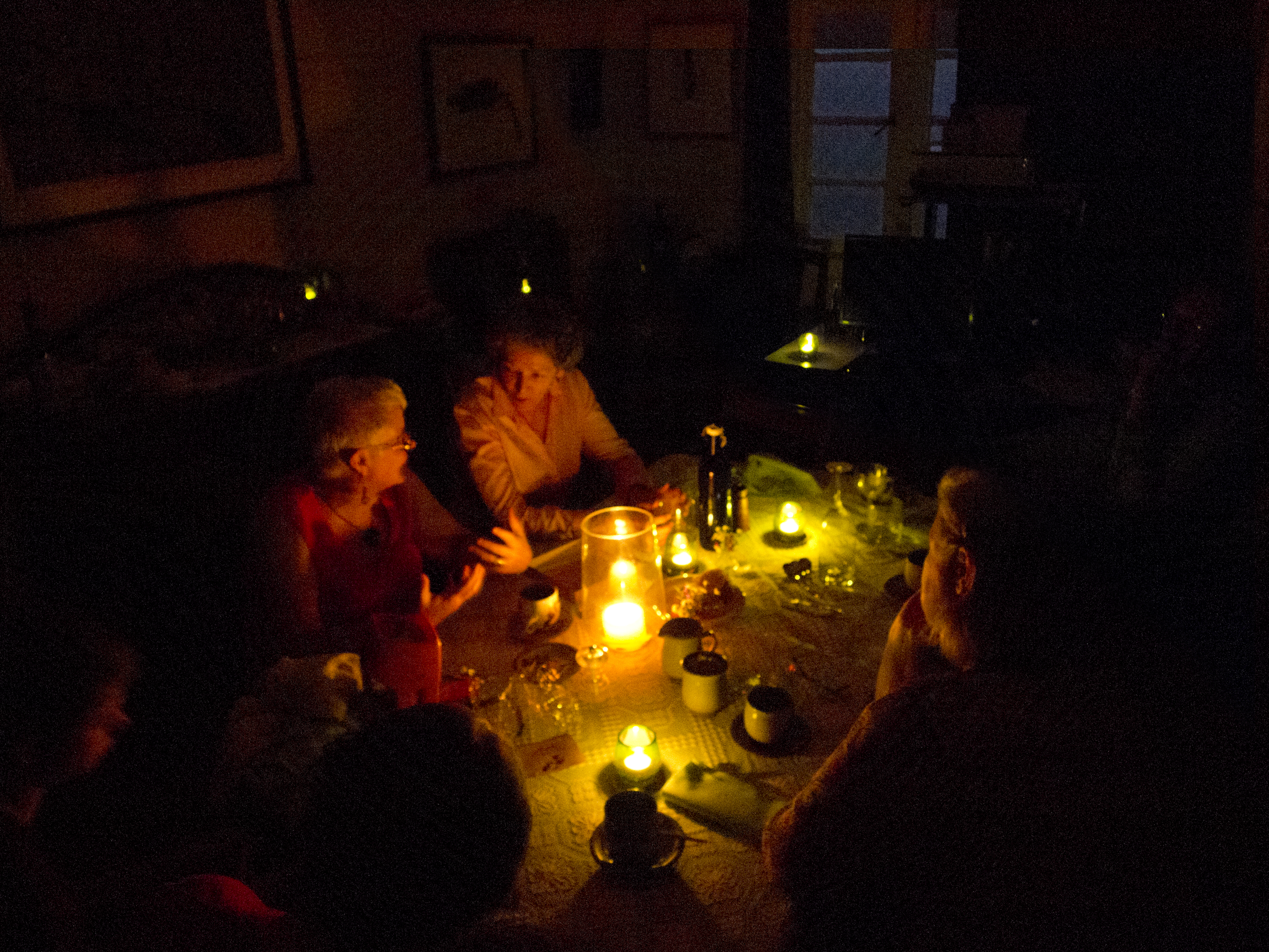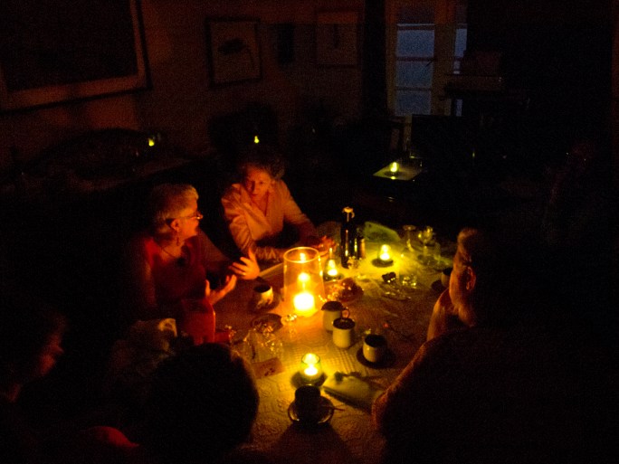 At a dinner attended by Queensland artists’ book people last Saturday in Brisbane a giant thunder storm caused a black-out. Now any self respecting ‘bookie’ would probably have a mini-book reading light or two on their person, but this was not the case. Out came the candles – and in their yellow light we were pushed closer together by the darkness …