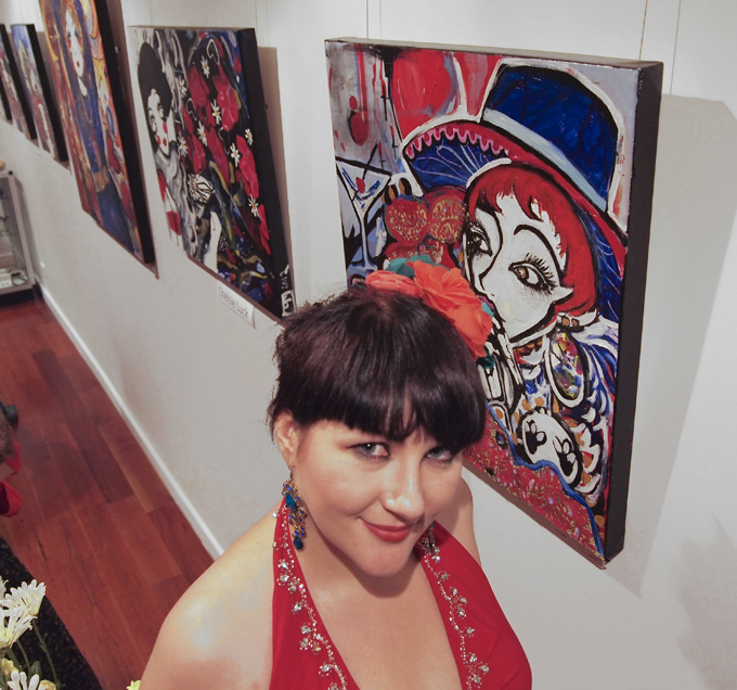 The Toowoomba art scene has few artists as stylish and enigmatic as Chelsie Luck. With an exhibition record of 10 solo shows in the last 5 years Chelsie’s practice is prolific and well defined by her autobiographical approach to subject matter. Her bight palette, wide-eyed portraits of young women have a sense of life as adventure.