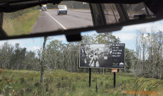 The Grafton Regional Gallery is well known for its Jacaranda trees and the Jacaranda Acquisitive Drawing Prize. But there are other things, for example how many regional galleries participate in highway billboard advertising? —GRG does. Another aspect is the diversity of shows presented include curated exhibitions from works in their collection, shows by local artists and travelling exhibitions—recently the Archibald Prize,.