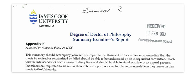 Monday 11, 2013: The email and report arrived – One examiner gave the thesis the ‘all clear’. The other examiner required review of some aspects of the thesis. So, the final hurdle is some corrections and then some more university bureaucratic documentation and I’m done!!! Dr Stephen Naylor my supervisor is excited as well…