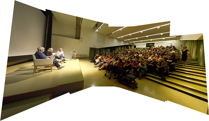 Following the discussion, a very chatty audience enjoyed a scrumptious afternoon tea and the launch of Hearsay, a large format collaborative artists’ book by artist Euan Macleod, printmaker Ron McBurnie, and writer Lloyd Jones. They apparently didn’t worry too much whether or not their work was or was not an artist book, but have sensibly hedged their bets by also producing the pages as a portfolio of unbound prints (in case anyone thought it wasn’t art, or more probably because the portfolio might be more saleable than an artist book ).