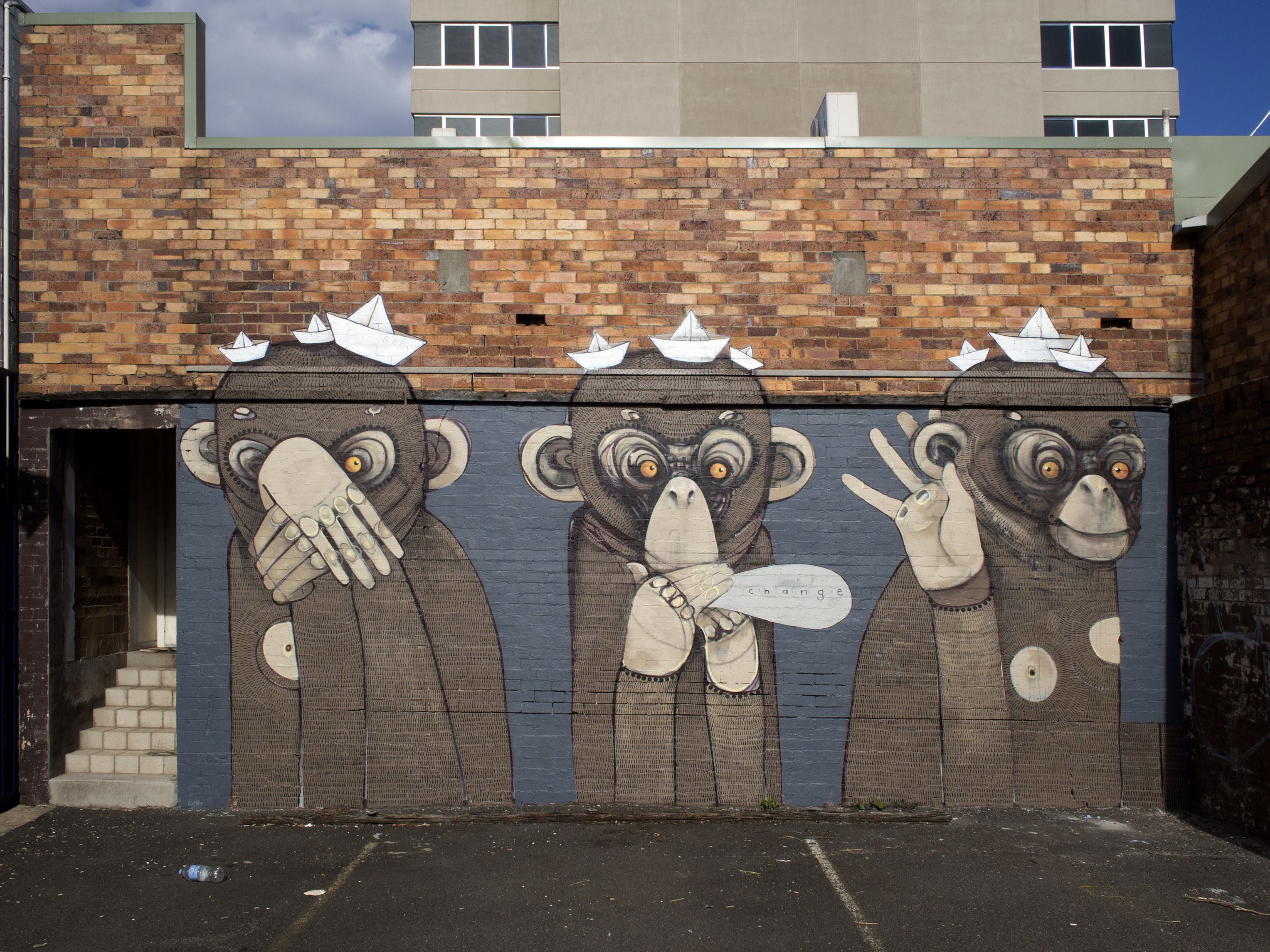 National awareness, at least in Australia, arose through the acceptance and support of Melbourne’s laneway graffiti to the point where it has become a marketable tourist destination and has brought about the repossession of these once deserted grungy rear access thoroughfares.