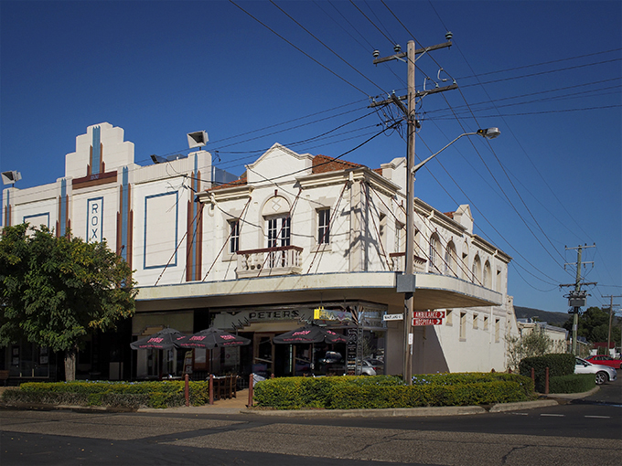 Last year when doing some research into the Niagara we encountered an amazing story about another Greek restaurant called Peter’s Cafe in the central north NSW town of Bingara. Three friends Peter Feros, Emanuel Aroney and George Psaltis from the island of Kythera came to Bingara in the 1920s and formed a partnership in a range of businesses. They designed and built Peter’s Café and the adjacent Roxy Theatre. When it opened in 1936 the enterprise was a quite remarkable package: café, guest accommodation, theatre, leased shops and energetic and entrepreneurial expertise of the three partners.