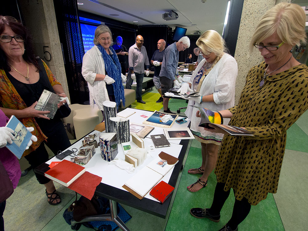For photobook people the 14th of October is World Photobook Day (WPD) and celebrations worldwide are coordinated through the Photobook Club group. On this day in 1843, the British Library catalogued Photographs of British Algae: Cyanotype Impressions by Anna Atkins, and is therefore considered historically significant as the first official record of a published photobook. In 2013 Victoria Cooper and I organised an event in Toowoomba. This year as part of my Siganto Foundation Artists’ Book Research Fellowship we arranged two events to take place at The Edge facility that is part of the SLQ.