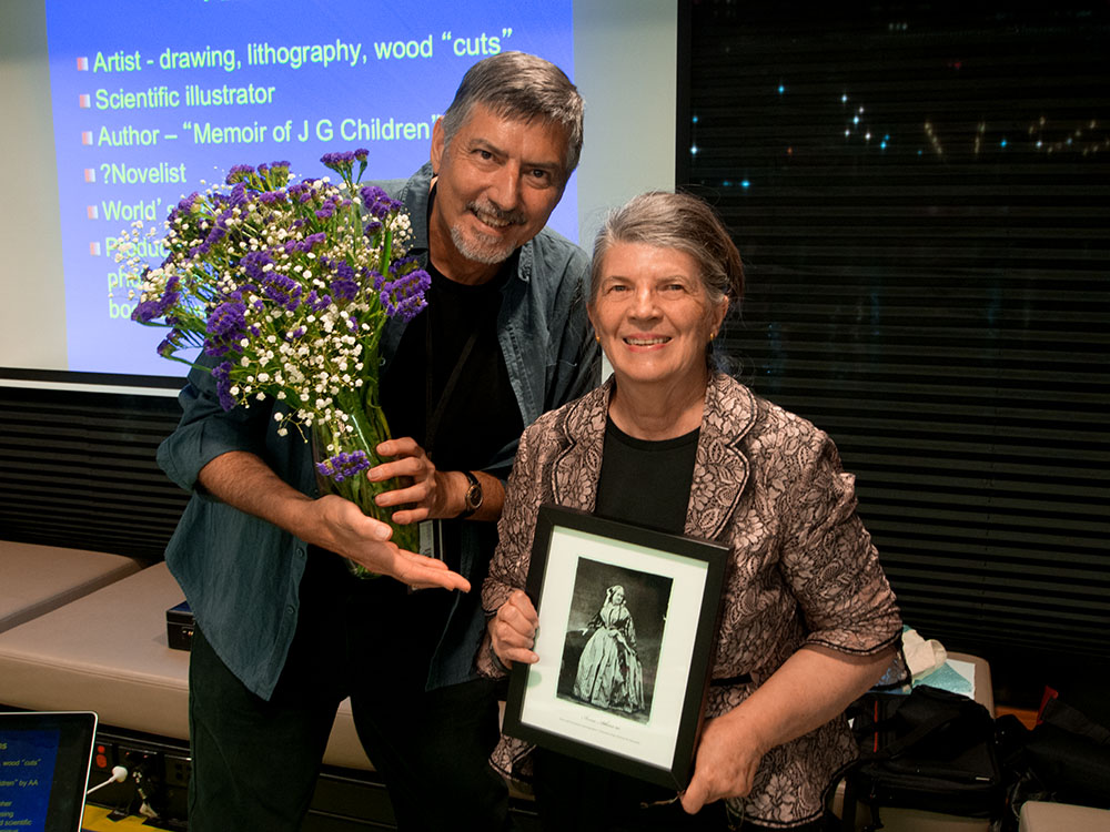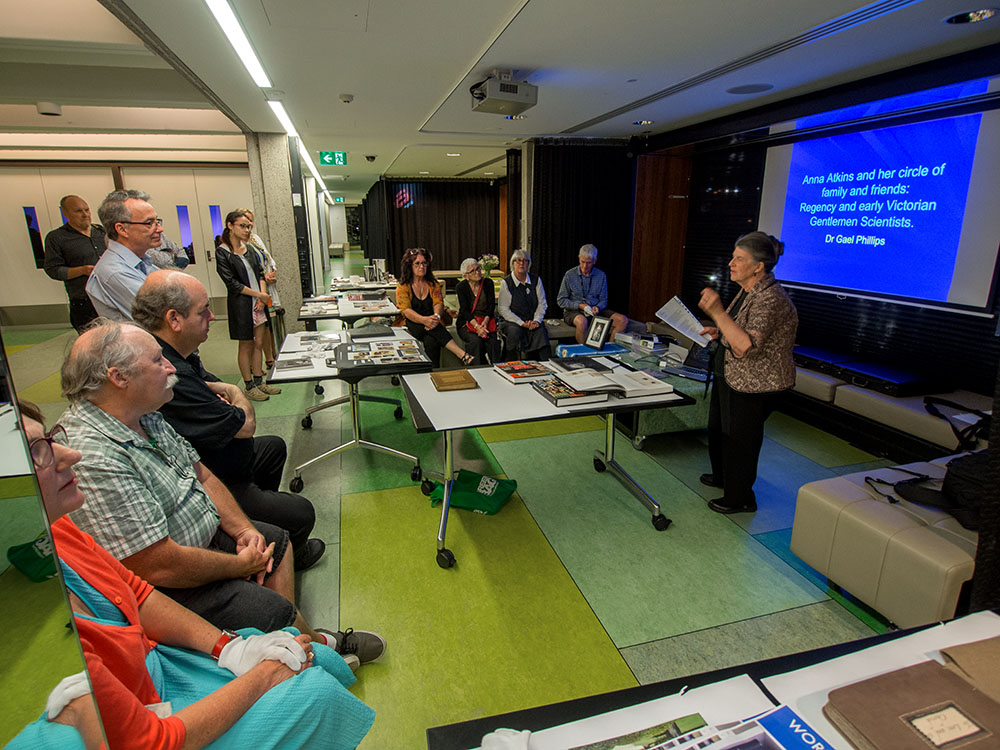 A special part of the evening WPD event was a presentation by Dr Gael E. Phillips about Anna Atkins, her family and motivations for her cyanotype work. Phillips, a local Brisbane resident, is a distant cousin of Atkins shared her extensive research of this significant family connection. The assembled group were presented with the fascinating story of Anna Atkins (‘Anna Children’ – her maiden name), her father – George, relatives and networks in photography, science and society in nineteenth century England. Two attendees Dr Marcel Saffier and Sandy Barrie both significant photo historians showed a strong interest in Phillip’s research and talk.