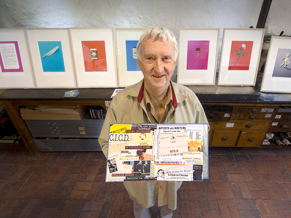 The 2015 Residency recipient was leading Victorian artist William Kelly a former Fulbright Fellow and Dean of the Victorian College of the Arts from 1975–82. His SLV research project dealt with Australian visual artists practicing between World War I and today, whose works have been informed by their beliefs about war and peace. His intention was to create an ‘accordion’ artist’s book – literally an unfolding story – that celebrated and connected the work of these artists*. In a comment about the body of creative work made as a result of the Baldessin Press Studio Residency Kelly was to say: