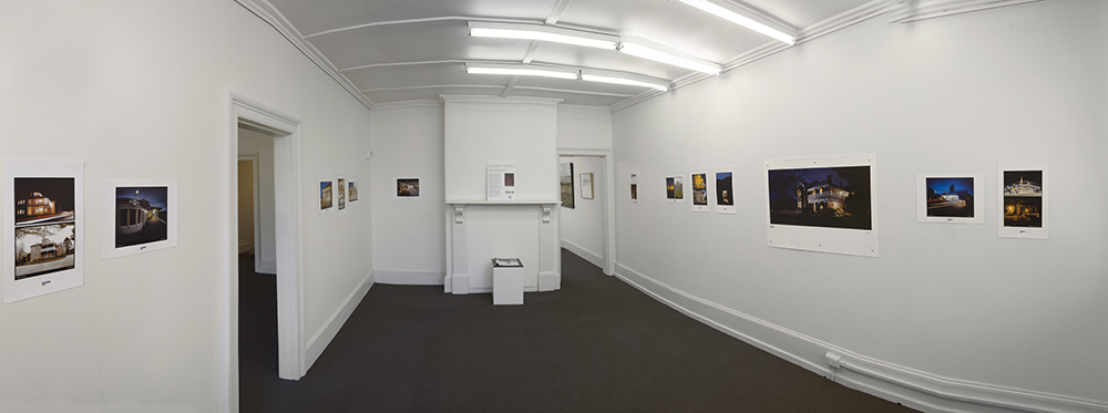 Nocturne photography captures a time of day where the afterglow of sunset and the glow of streetlights can transform the everyday experience of place. In these photographs, street scenes and buildings that may be familiar in normal daylight take on the dramatic appearance of movie sets. Some photographs created at this time can require long camera exposures and therefore produce images that can capture blurred movement of people and car headlight trails. These images offer to the community a different perspective to their daily experience of place.