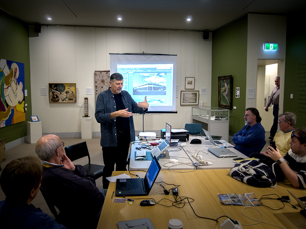The project began in mid-September when we conducted a workshop at the New England Region Art Museum (NERAM) in re-photography and nocturne light capture. This included practical shoots around Armidale from which images were then optimized and uploaded to Nocturne: Armidale project Facebook page to share with the wider community. Another aspect of the project was the digital processing and optimising of nocturne photographs. This was accomplished in a mentored section of the workshop with the participant’s images.