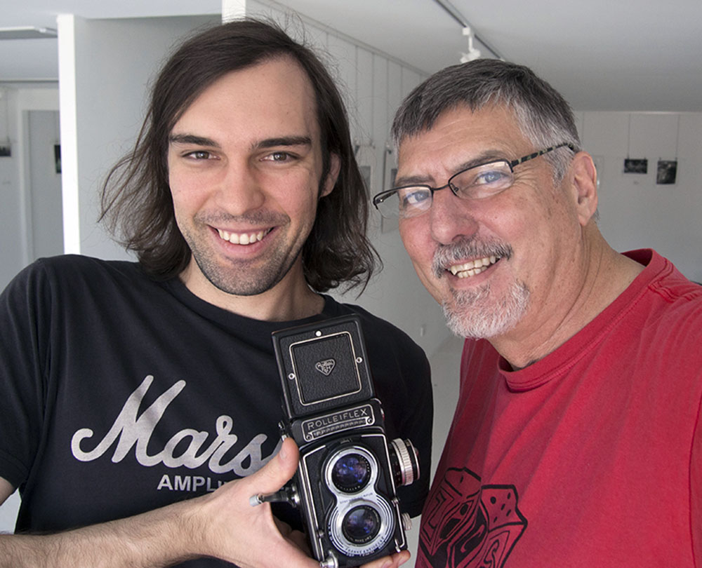 His dilemma now was that with digital photography he had no need for the equipment and he wanted to pass it on to someone who would appreciate it and perhaps even use it – he proposed that I was that person. I appreciated his gesture and felt honoured by his offer. I mentioned that Vicky and I had a Rollei in our possession and that we would look after the gear and pass it on to an individual, perhaps a student, who we considered would value this equipment and use it to extend their analogue photography work. We made photographs of our meeting with the cameras and David left feeling excited that his gift was well received and would be looked after.