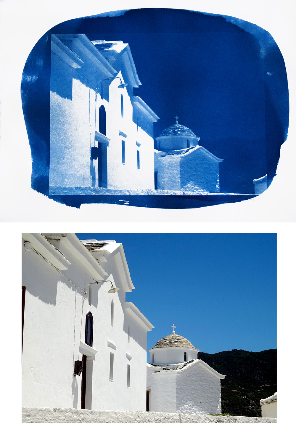 UPDATE-SKOPELOS WORKSHOP: Join us on a Greek Island » A cyanotype from an inkjet negative of a Skopelos church. PHOTO: Steph Bolt