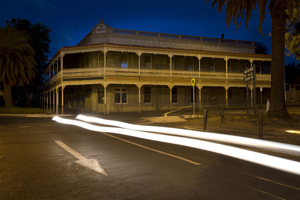 Castlemaine Midland Hotel just over the road from the station. The lights are out —- Is anybody home…?