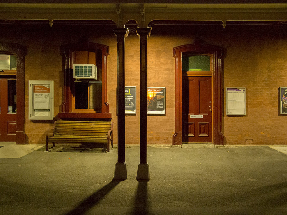 Castlemaine station detail… Poster says “When it’s hot – Trains slow down”. It was 41 degrees C max today – the train was running late. It was still 34 degrees when the train left the platform.