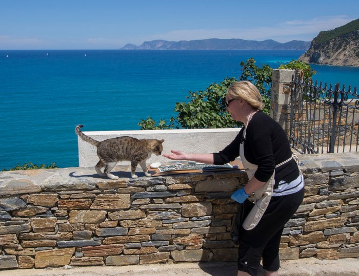 The workshops started with breakfast daily at 8.30am with a studio start at 9.00am. By 2.30pm the formal program finished enabling personal exploration of the diverse subject matter available. Everyday participant’s day concluded in the restaurants of the Paralia partaking in the culinary delights of rustic Greek food supported by ouzo, retsina and aspro krasi (white wine). We ate fantastic squid, octopus, anchovies, little fishes, rabbit, goat, traditional foraged foods like the succulent kritima, local cheeses, Skopelos pies and gyros. Some members of the group formed relationships with the restaurateurs and towards the end of each meal extra wine and special desserts were presented as gifts by the host.