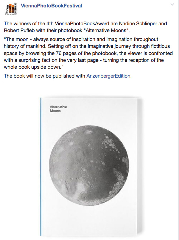 On Saturday evening the winner of the 4th Vienna Photo Book Award was announced. The winners were Nadine Schlieper and Robert Pufleb with their photobook ‘Alternative Moons’.