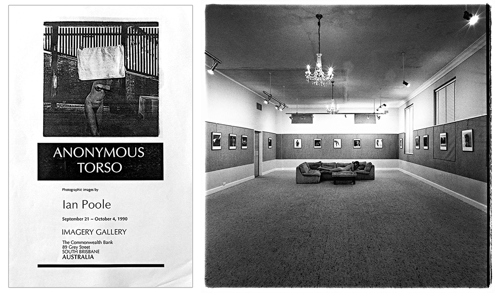 His interest in personal photography, and in particular the female nude, led to his work being presented in exhibitions. In 1984 I curated an exhibition entitled ‘5 One man shows’ in Stephens Gallery in the Brisbane City Hall, which included a selection of Ian’s nudes. Later in 1990 his first solo exhibition ‘Anonymous Torsos’, was held in Imagery Gallery (a gallery run by myself and my mother Ruby). He also participated in many group shows in galleries in Australia and Japan.