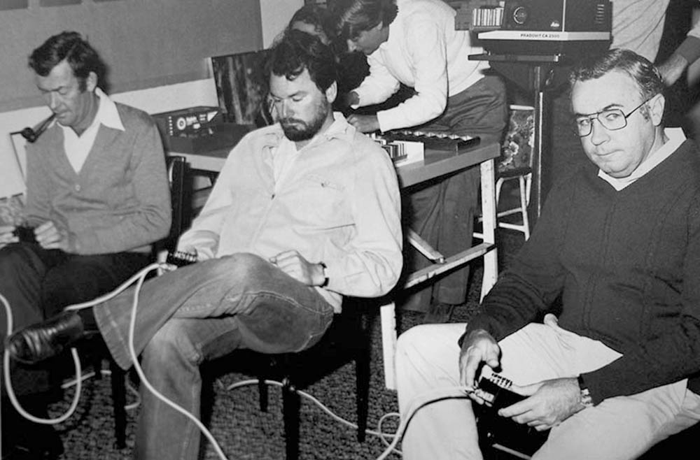 Ian Poole and Kev Hudson judging the 1982 Brisbane National Exhibition of Photography at Imagery Gallery