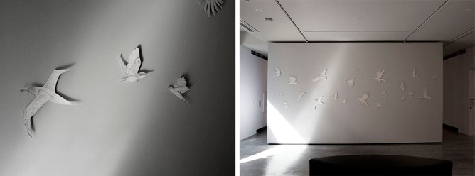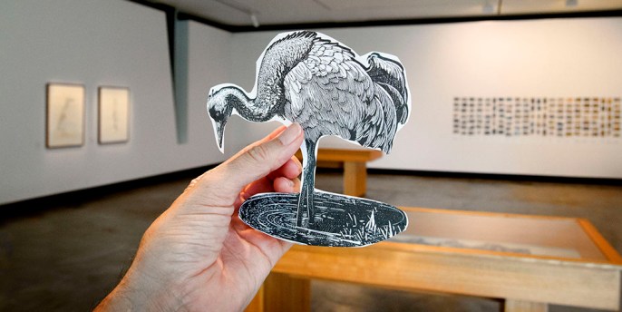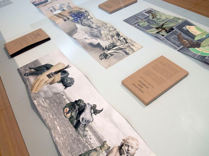 Along with the recent work of artists book shown in the vitrines, there was a few wall installations of Haby’s collages and Jennison’s pencil drawn birds.