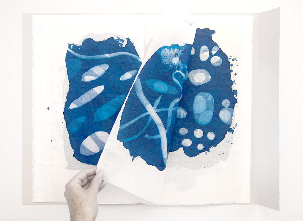 A unique state book of 6 double-sided cyanotype images on rice paper.
