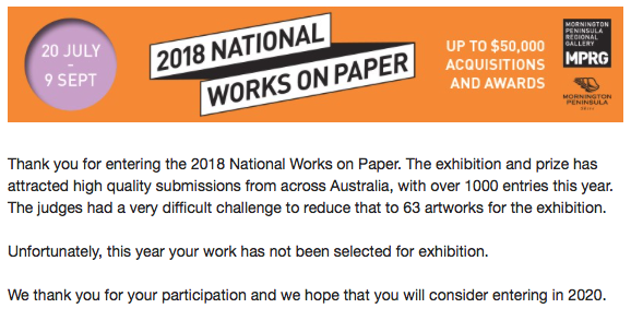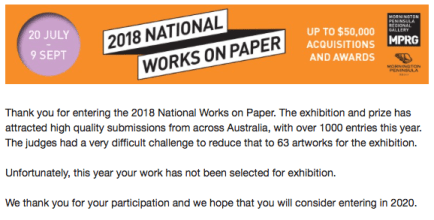 Not a big problem for me as only 1 in 16 artworks were accepted for the 2018 awards and those names on the list are a fine group of artists.
