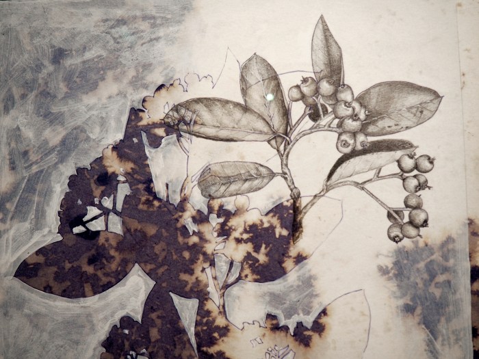 BEAUTIFUL FRUIT – Tilley Wood+Linda Spowart » Debris 1 (Detail) Linda Spowart 2019Ink, gesso and graphite on cotton