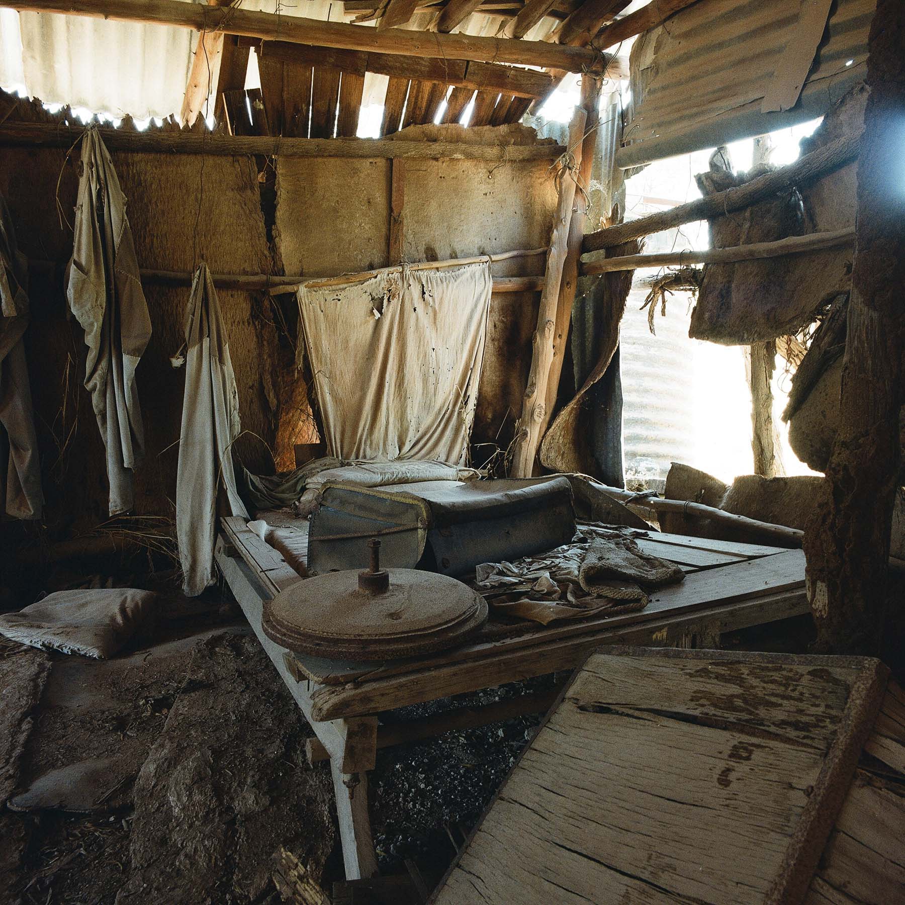- A ‘room’ of walls made of bits of bags, iron sheets, wood and bush poles seems like an abandoned hermit’s lair laid dormant for a century.