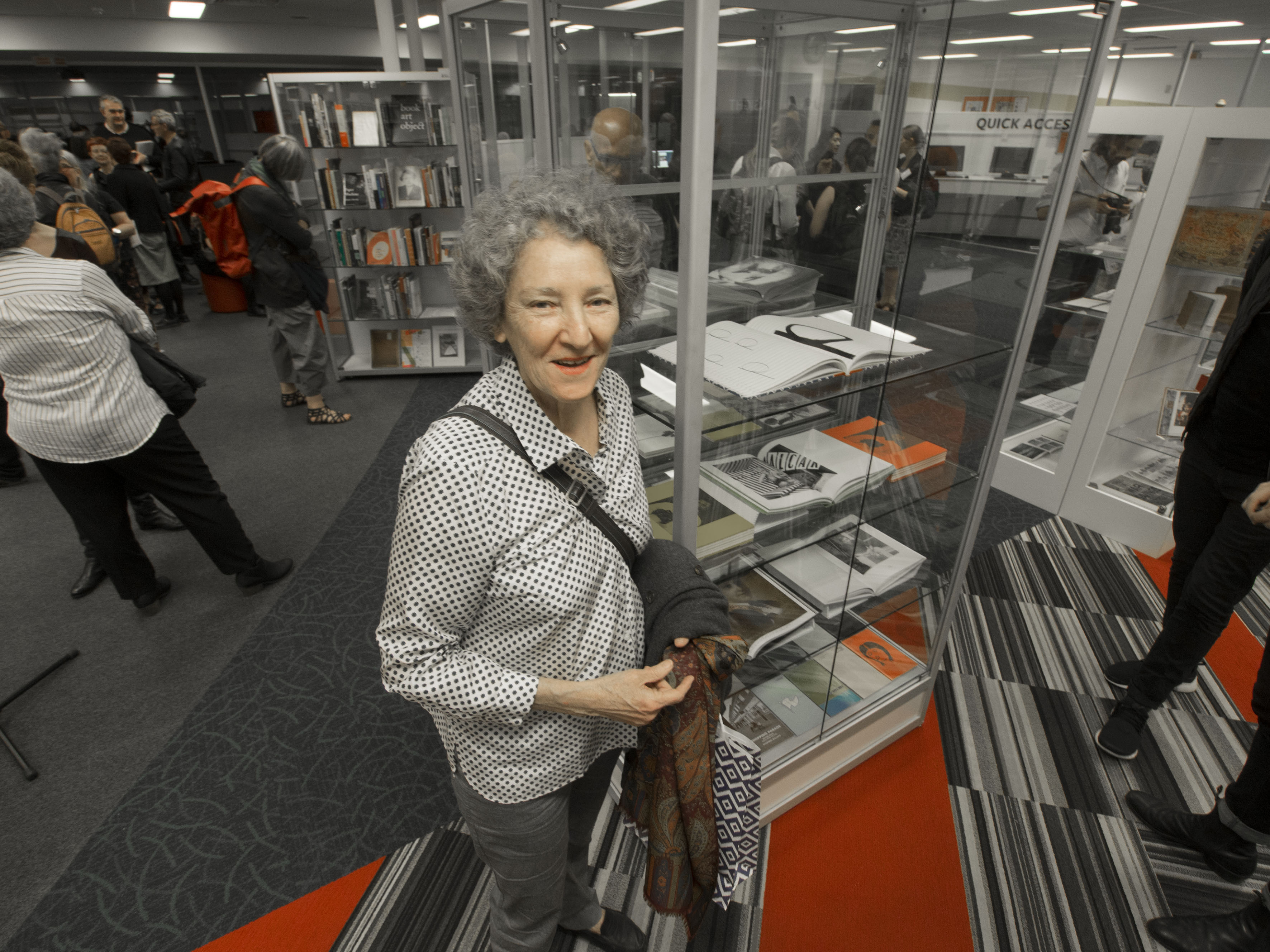Noreen Grahame in the exhibition “… & So” at the Queensland College of Art Library -Photo from ABBE Artists Book Conference 2017