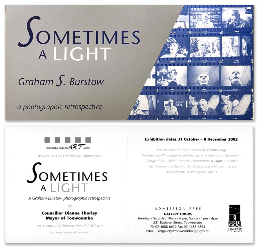 EULOGY: GRAHAM BURSTOW – A personal view » Burstow invitation for his exhibition ‘Sometimes a Light’ at TRAG 2002