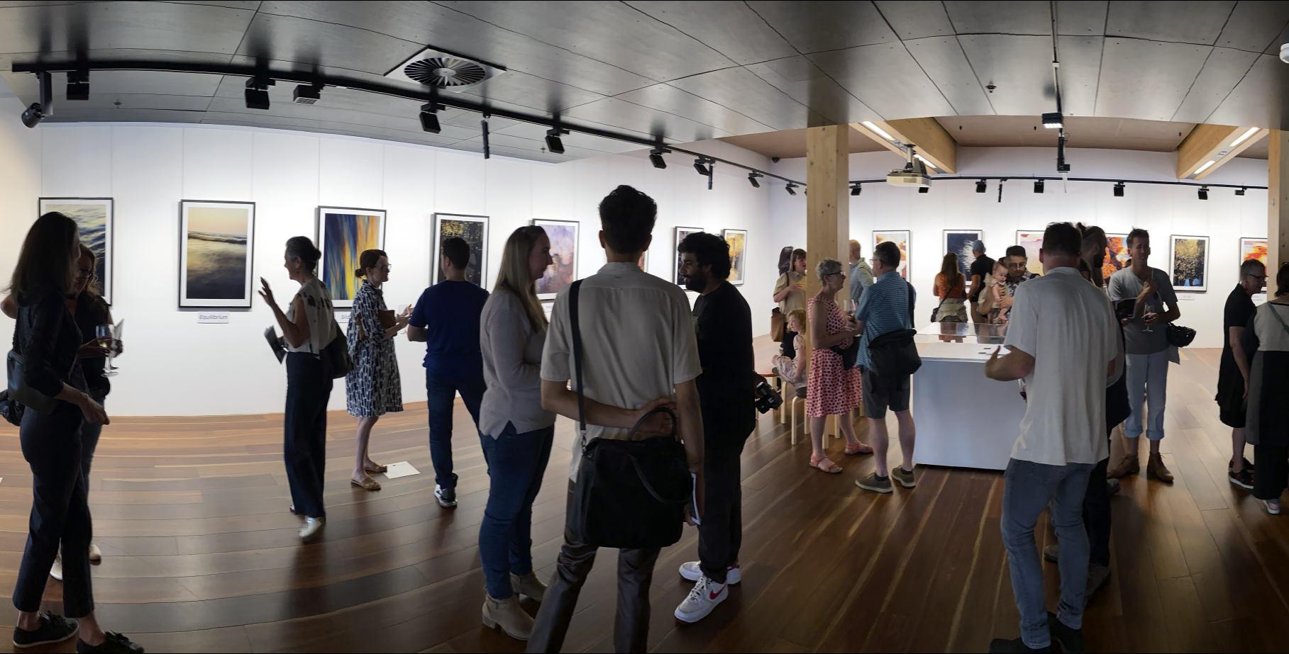 Attendee panorama at Ncholas Walton-Healey’s exhibition SALT FRAMES at the Library at the Docks in Melbourne/Naarm on 15 March 2023
