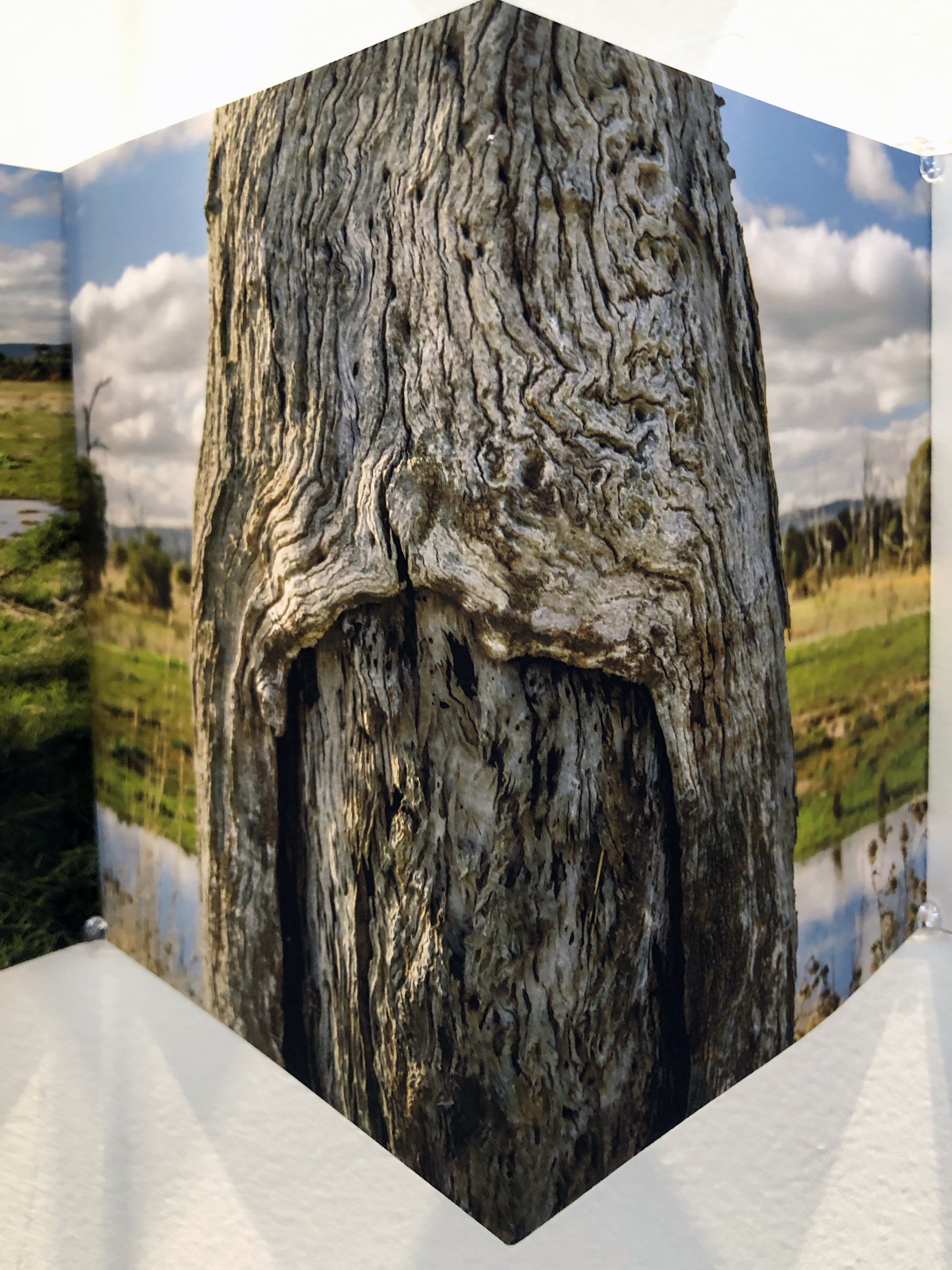 IN THE WETLANDS: 3 Artists – Cooper + Hollins + Spowart collaborate, drawing inspiration from Winton Wetlands » Cconcertina Story Tree closeup