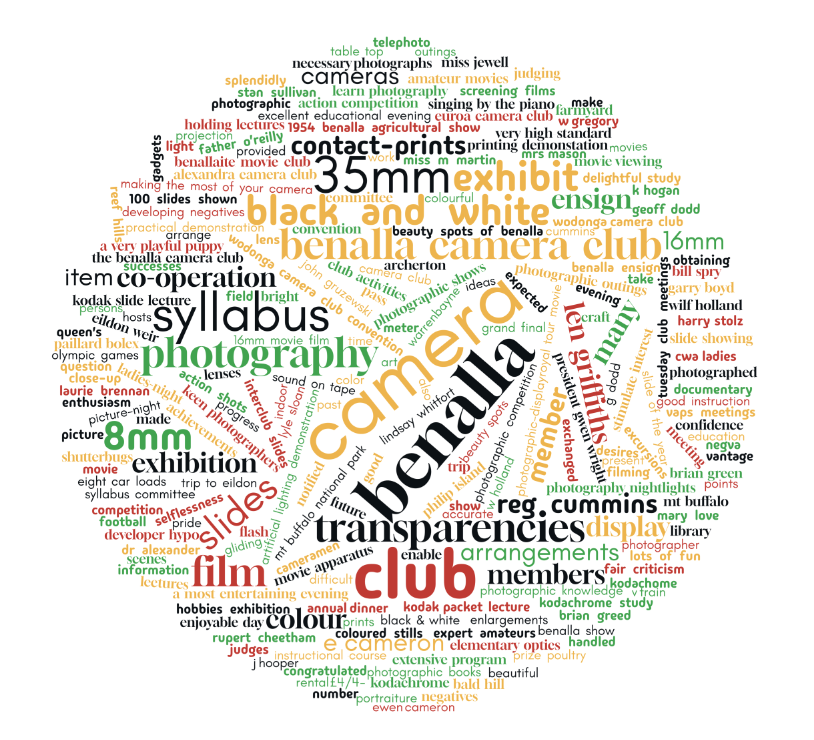 70 YEARS of the BENALLA CAMERA CLUB – An Exhibition » Timeline word cloud 1954-1969