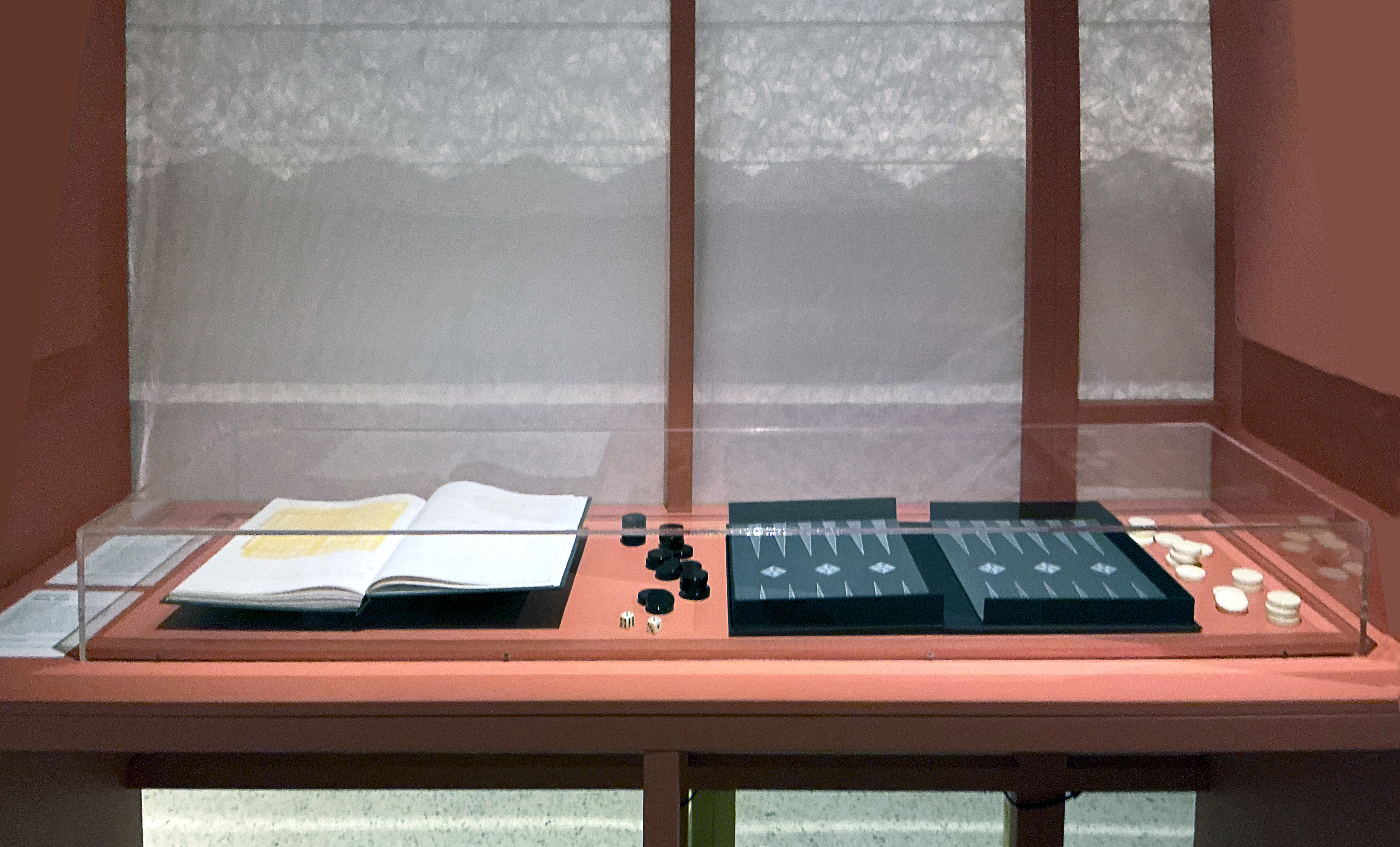The exhibition includes some of my favourite artists books including Towla (2017) by Deanna Hitti, with the integral clamshell box creating a board for backgammon, the subject of the book. It is an intriguing book with instructions for backgammon phonetically translated using Arabic and Latin characters but with a twist. Arabic letters spell the instructions in English and Latin letters spell the instructions in Arabic. Some of the books in this exhibition have become my new favourites.