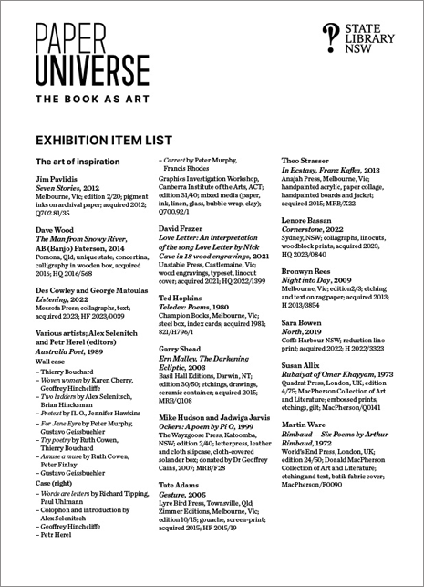 Paper Universe: The book as art is a free exhibition at the State Library of NSW until 3 May 2026