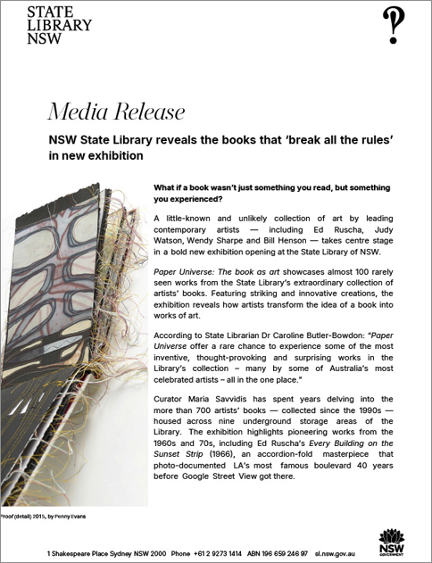 A MAJOR EXHIBITION OF ARTISTS BOOKS AT THE STATE LIBRARY OF NSW