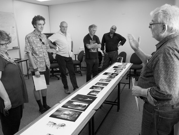 As the end of the teaching/learning year draws to a close the annual assessment day for student folios draws near. This year 5 Brisbane photographers joined with local professional identity Syd Owen to provide this important industry connection with the Southern Queensland Institute of TAFE’s Photoimaging department’s students. The team was (left-right) Alison Ahlhaus, Syd Owen, Andy Cross, Mark Schoeman, AIPP Queensland President Jan Ramsay, Cam Attree and Ian Poole.