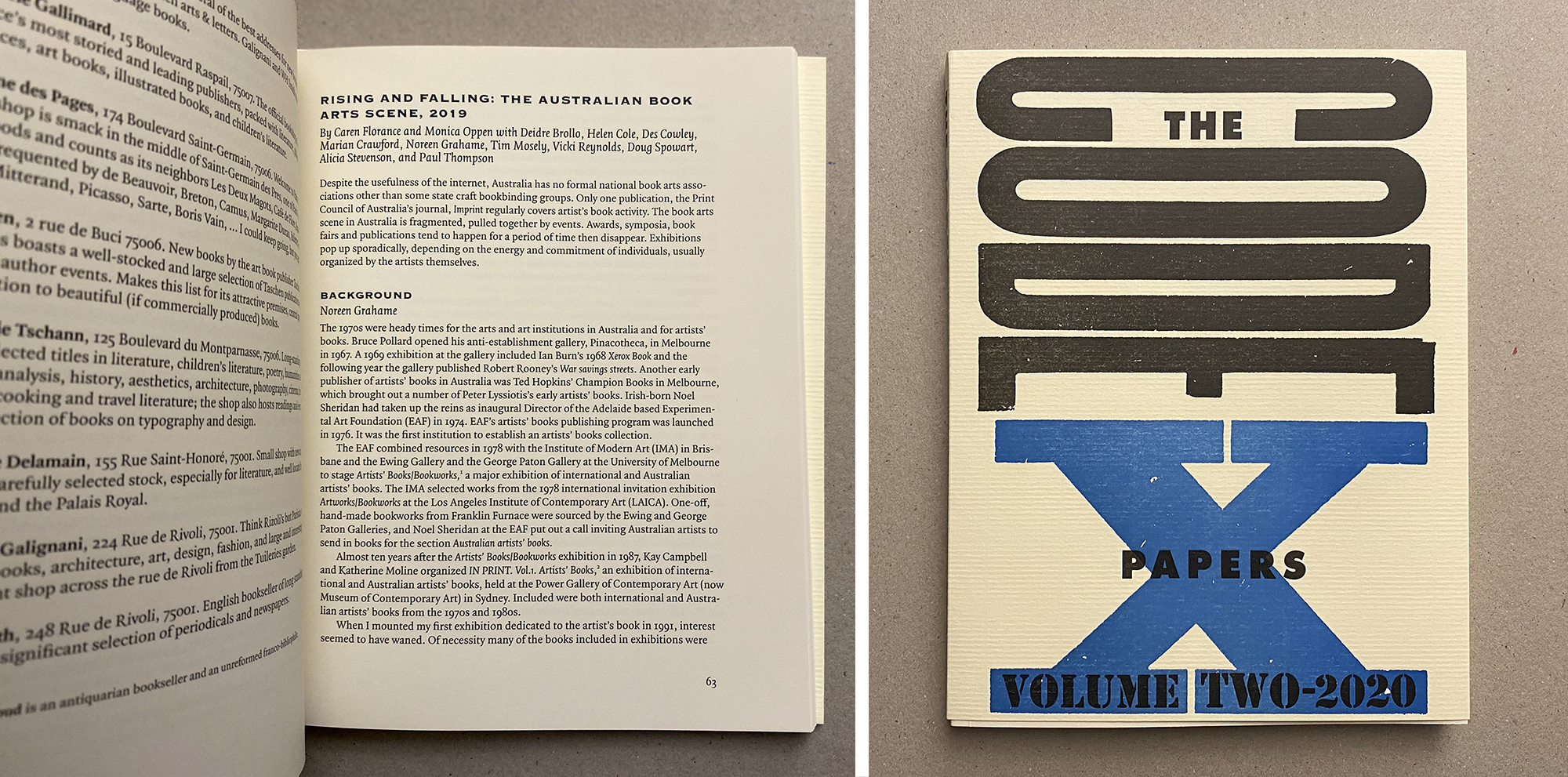 Early in 2019 Vicky and I received an email from Monica Oppen and Caren Florance inviting our contribution to a report commenting on news and updates on book arts activity in the Antipodes that they were preparing for the Codex Foundation‘s new journal The Codex Papers. They mentioned that they were asking for those involved with projects, conferences, workshops, collections and awards to send through their comments and plans so the local scene could be collated into the report.