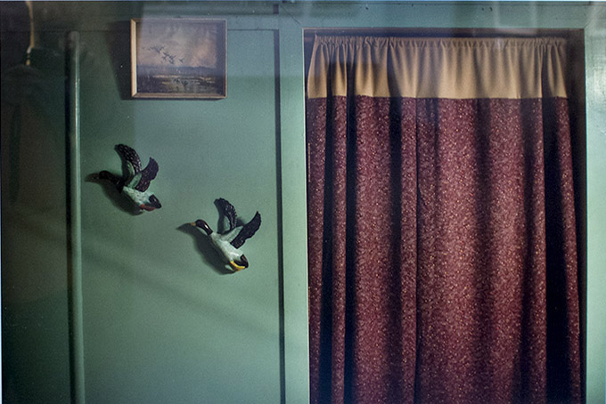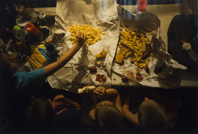 The exhibition also includes historical family snapshots that are presented alongside the recent images. A young child smiles back at the viewer, faded and colour-casted prints and wedding group photographs all add to the story of each subject. To protect the anonymity of people in these images black bands have been placed across faces to prevent recognition. The integration of these photographs extends the exhibition beyond just being about photographs and into the realm of a more complete and provocative social documentary statement.