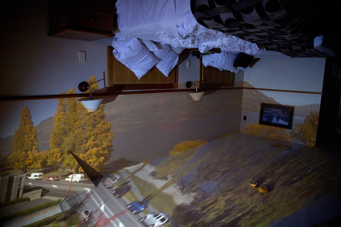 We checked into the Rydges on the Lake hotel at Queenstown in the late afternoon and the lake-view room demanded that a camera obscura image be made. Hotel and motel rooms are all pretty much the same—the beds, the bathroom, the table with one chair maybe two, the big mirror, the tiny bar fridge full of junk food and drink and the TV. In the room one could be anywhere and nowhere.