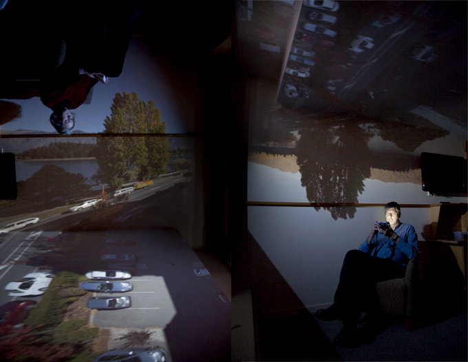 In our collaborative work, we are interested in both the physical construct and cultural conventions that inform and shape us. This includes the common rituals and structures that surround, support and transport us in our everyday lives. In this work we have extended the context of documentary photographic methodology to include the narrative potential of the camera obscura and architectural projections.