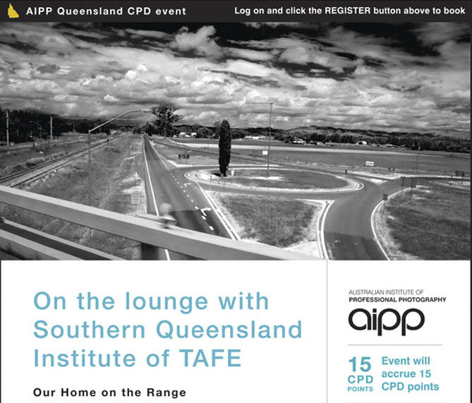 The session concluded with a PowerPoint show presenting a selection of images and comments from past students. It was interesting to hear of the experiences of these past students about studying at SQT as well as their achievement in photography. The past students included: AIPP Chairman of the Board Alice Bennett, Nicola Poole, Katie Finn, Lisa Mattiazzi – National Gallery of Australia imaging specialist, Lydia Shaw who works in many areas including photography and teaching in Dubai, nationally acclaimed commercial photographer Damien Bredberg, Sue Lewis – APPA Team Manager and recent graduate Shanea Rossiter who is establishing a business in Warwick.