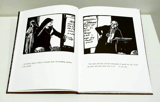 A fine press/printmakers book is represented by Sheree Kinlyside’s The reluctant nun (2009) from AM. The book was the winner of the Regional Artists Book Award at the 2010 Libris Artist Book Awards.